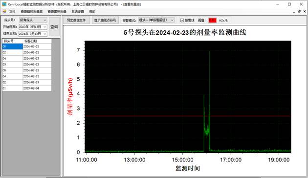 6、数据分析:免费提供功能强大的RenLocal辐射监测数据分析软件,可通过曲线和棒状图的形式分析历史剂量率和累积剂量数据以及实时查询报警数据与统计分析等